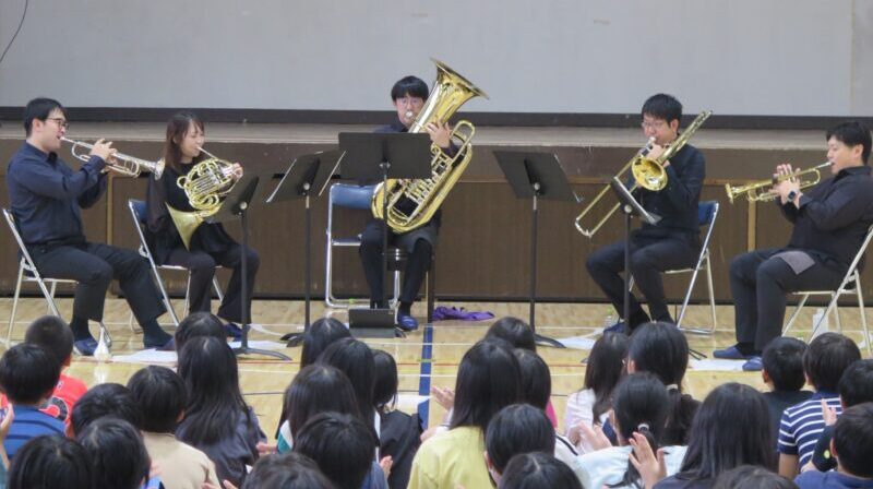 目黒区立東根小学校 5年生 127名日時:2025年9月4日(木)11:10~12:10会場:体育館出演:原田照久、東野匡訓(トランペット)、豊田実加(ホルン)、廣田純一(トロンボーン)、山﨑勇太(…