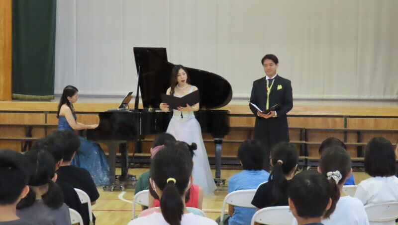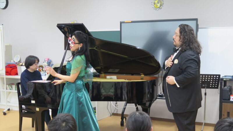 目黒区立 向原小学校 5年生45人日時:2025年12月8日(月) 14:00~15:00出演:荒牧小百合(ソプラノ)、小林大祐(テノール)、中山博之(ピアノ)