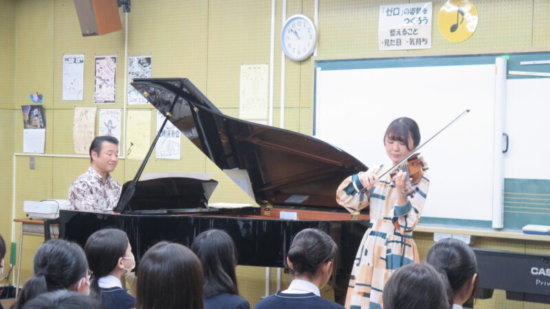 目黒区立第十中学校 2年生 144名日時:2025年12月23日(火)①10:50~11:40/②11:50~12:40(各50分)出演:白石光隆(ピアノ)、瀧村依里(ヴァイオリン)