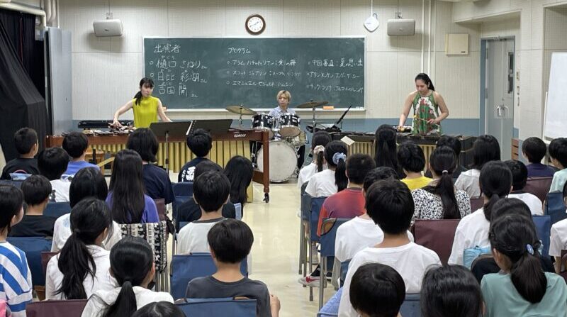目黒区立中目黒小学校 6年117名 ※2回に分けて実施日時:2025年9月9日(火)①11:50~12:30 ②13:35~14:15出演:ぱんだウインドオーケストラ打楽器メンバー 樋口さゆりさん、…