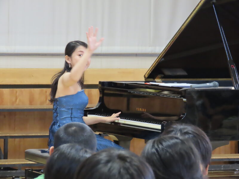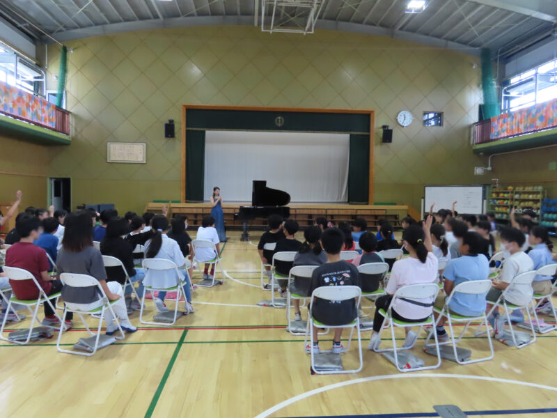 生徒の皆さんも授業で聞いたことのある曲もあり、知っている曲では自然と音楽に身体が揺れている子もいました。