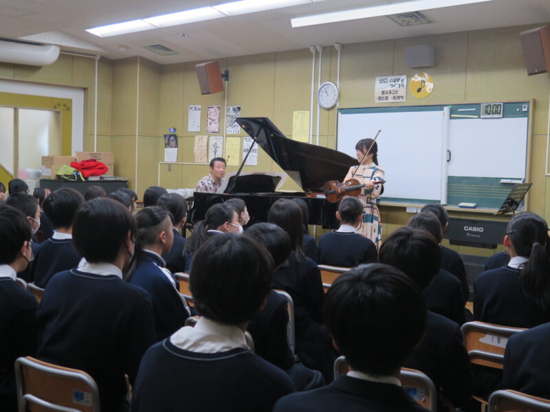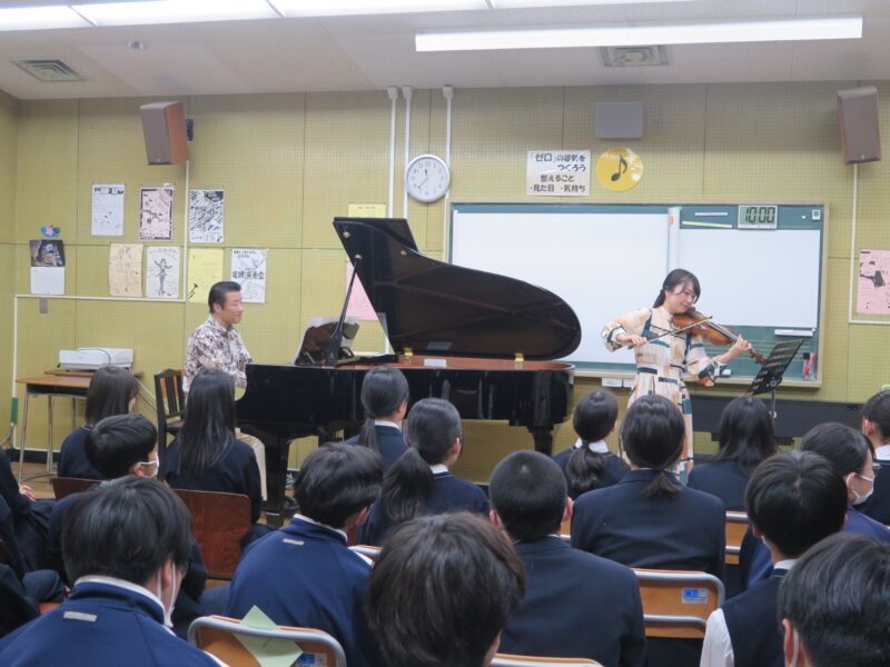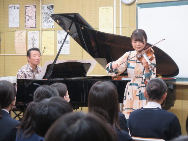 ヴァイオリンの優しい音色に寄り添うようなピアノ伴奏で、アウトリーチプログラムがスタートします。