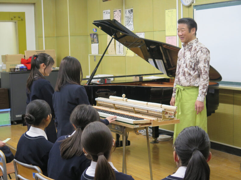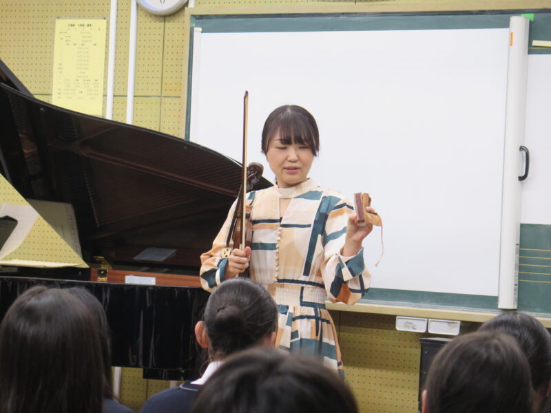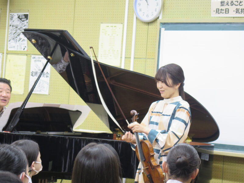 生徒の皆さんが、少しでも楽器や音楽に興味を持ってくれたら嬉しいです。