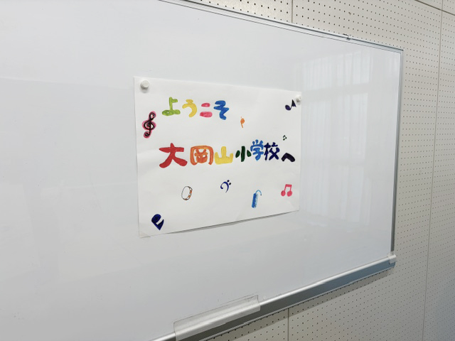 控室には「ようこそ大岡山小学校へ」というかわいらしいデコレーションが!温かいお出迎えありがとうございます。