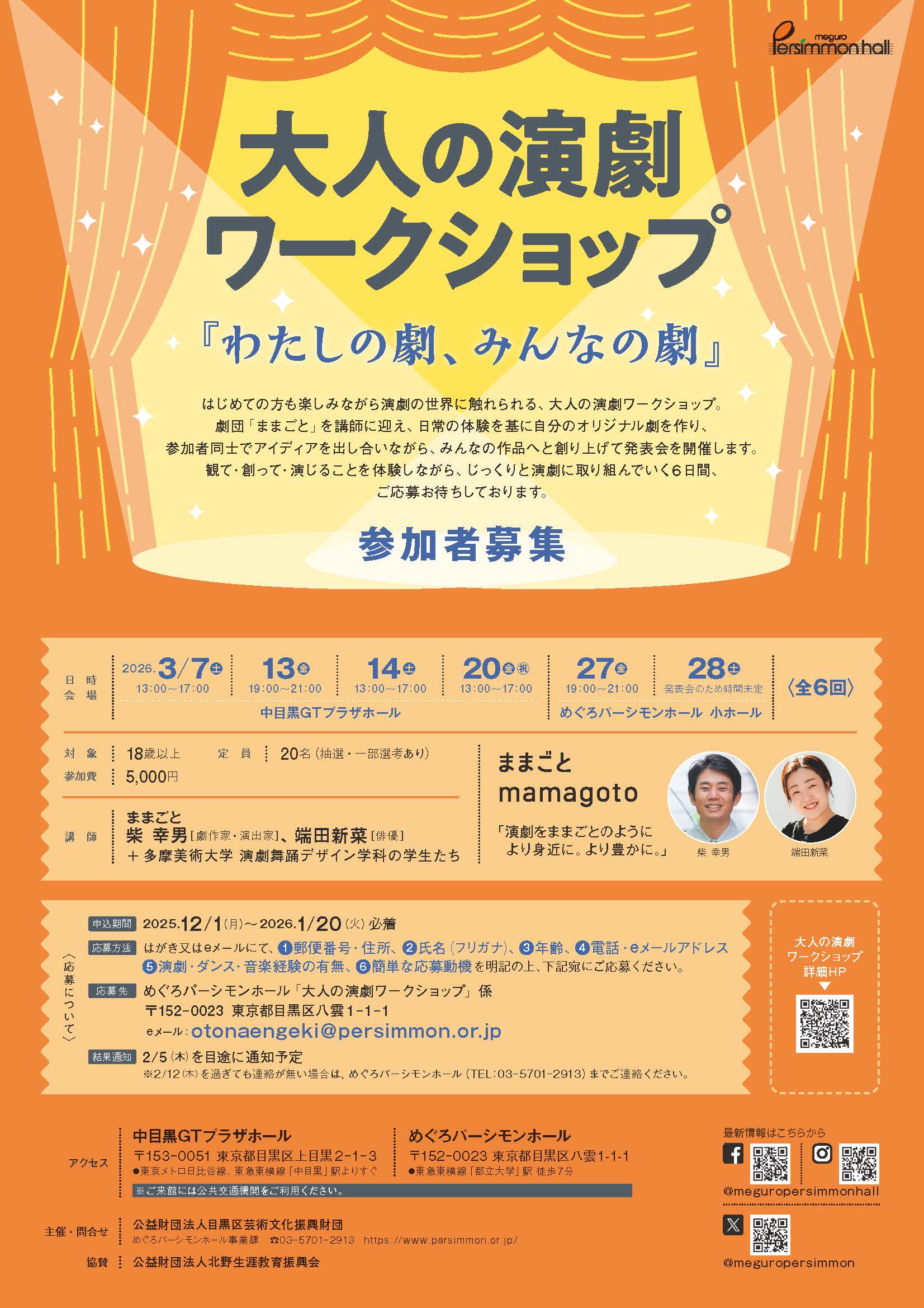 ■応募先:めぐろパーシモンホール「大人の演劇ワークショップ」係