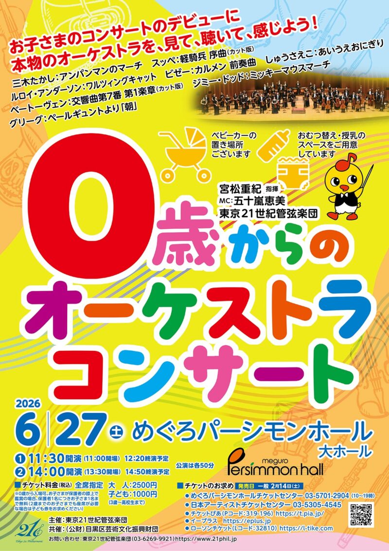 音楽を通して、多くの人の手を携え、新しい時代の「楽しいオーケストラ」を目指して活動している「東京21世紀管弦楽団」による、0歳からのオーケストラコンサート。